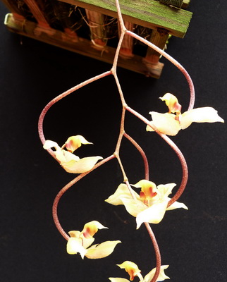 Nic speciálního nemám . Přes léto zalévám hojně ,v zimě málo a opatrně .Podmínky jako Stanhopea. Kvetou ovšem větší trsíky