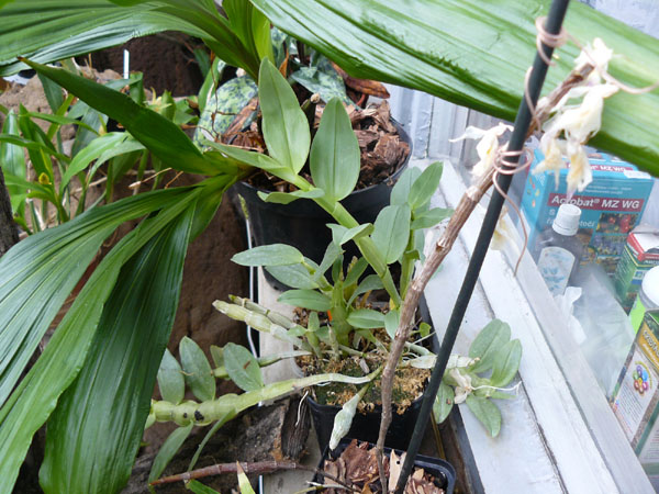 Karlos píše: Spousta pěstitelů chce věřit v nějaké zázračné hnojivo. Rozdíly jsou, ale minimální. Obecně platí, že kdo chce pěkné přírůstky, by měl hnojit spíše méně a častěji, v době vegetace, růstu nových pahlíz řekněme. Přírůstky se liší i rok od roku. Co se podaří jeden rok, nemusí se podařit druhý. Rozhodně nelze doporučit plnou koncentraci, ale max. poloviční tj. 0,05%. Již tu proběhla diskuse na téma hnojení zalitých, nebo suchých rostlin. Osobně jsem si už jistý, že lepší je hnojit kytky, které byly nějakou dobu před hnojením zality, nebo alespoň pomlženy. Vyhneme se tím problémům se skvrnami na listech, nebo popálení kořenů. Je to vše spíše teoretické, ale jsem si téměř jistý, že to funguje! Manželé Bakerovi a další autoři např. doporučují, propláchnout substrát před hnojením určitým množstvím vody. Prakticky to znamená prolít pořádně obsah květináče, aby se vplavily sloučeniny, které se tam mohou hromadit! Toto má samozřejmě pro zdravou kulturu smysl. Nemá cenu nic komentovat. Snímky hovoří jasně. Karlosi lidé z botanických zahrad a vědátoři rostliny pěstují moc vědecky a ne vždy jsou ochotni cokoliv zkusit. Ani manželé Bakerovi nemusejí mít vždy pravdu, protože také neznají vše čímž myslím novinky vedoucí k těmto výsledkům. Přitom ty novinky nejsou určeny zrovna pro Orchideje. Výsledek je ale výsledek a to je to podstatné. Ano přírůstky se liší rok od roku ale jinak než píšete. Jak vidíte, tak velikost listů odpovídá plně velikosti pahlíz a barva nesvědčí o předusíkovanosti.
