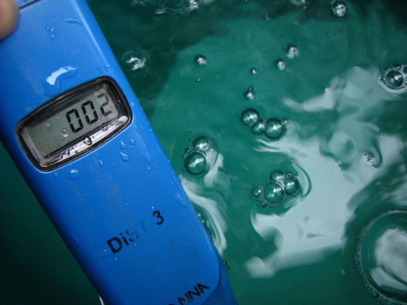 Norma pro technickou destilovanou vodu připouští vodivost do 20uS (pravda nemusí to tak vždy být naměřeno )takže dnes dešťovka vede .Teče v Hradci Králové mám dva sudy jeden je jen na 100L vody.Zatím stačí.