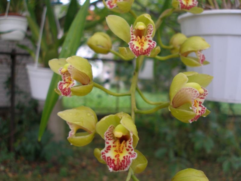 Já mám cymbidko ve vlastním substrátu - jemně nakrájená kůra, dřevěné uhlí, spagnum, trošku kupovaného substrátu. Na dně je polystyrén. Celé léto visí venku na ořechu a v zimě je v opravdu chladném suterénu.