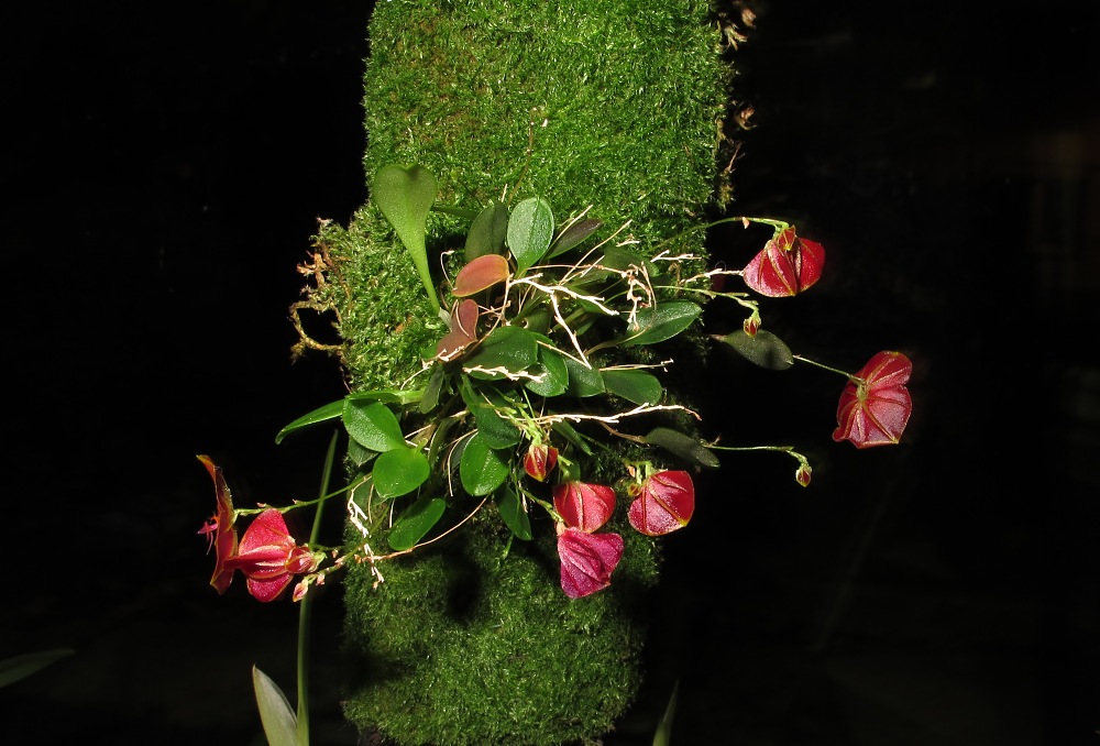 Haki: ne že by ta kytka nebyla krásná, ale stejně by se dala pěstovat na kůře třetinové velikosti, nebo kousku kmínku stromových kapradin. Ten blok je zbytečně velký a rostlina ho při svém neexpanzivním způsobu růstu jen tak neosídlí. Tyhle druhy horských mlžných lesů jsou samozřejmě trošku jinou kapitolou.