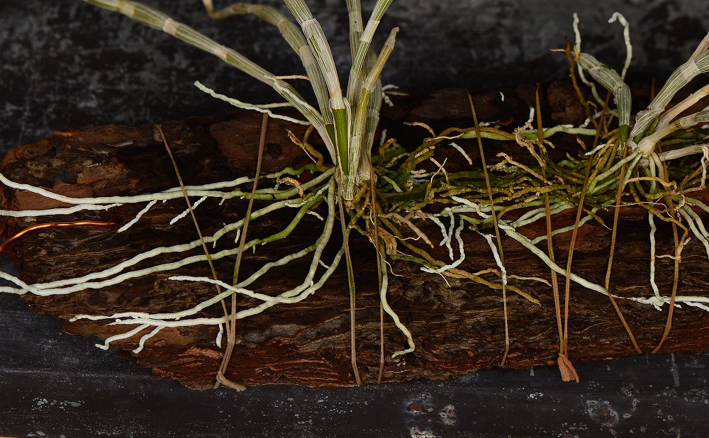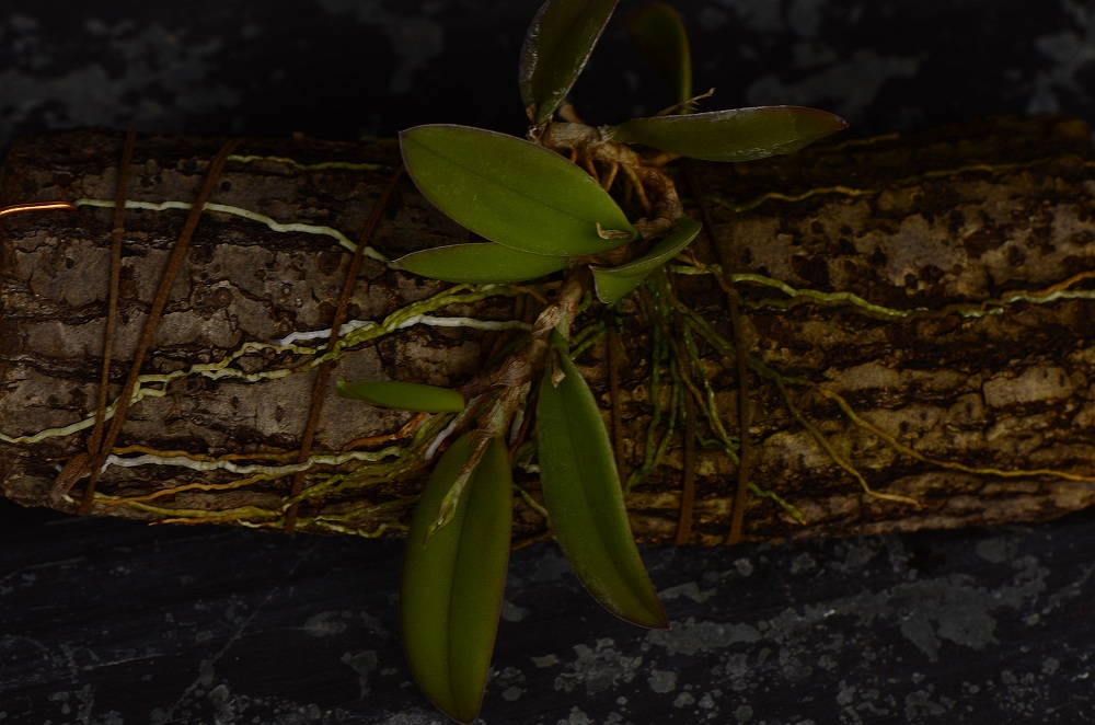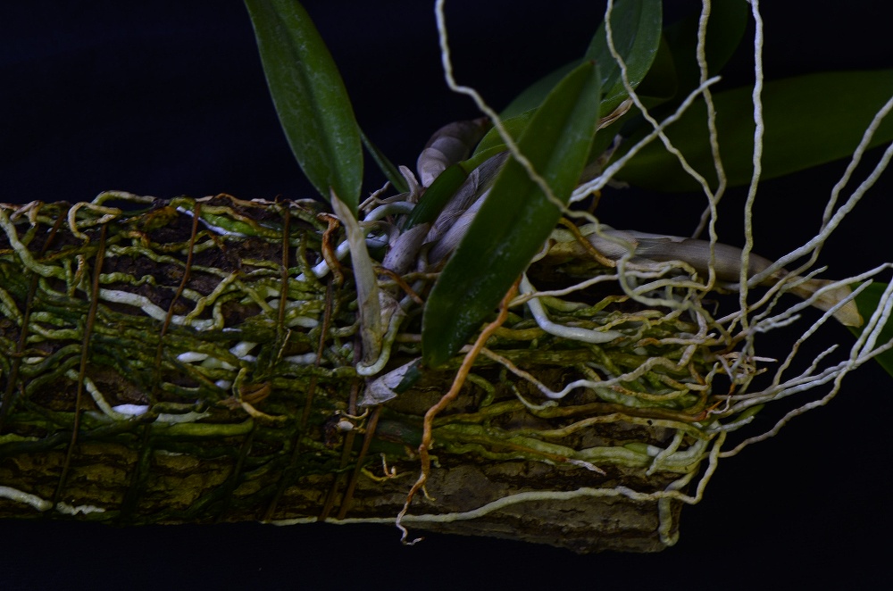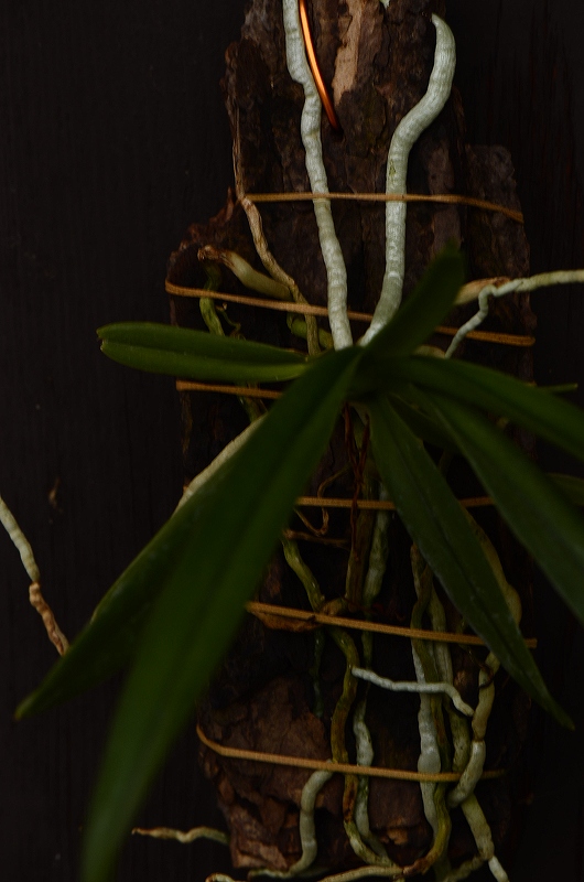 K tomu D. gratiosissimum. Rovněž mělo problémy s minimální podložkou z kořenů kapradin. Letos na jaře jsem převázal na holý modřín a takto udělalo nové kořeny. D. wardianum má na bloku z borovice něco rašeliníku, ale je ho tak málo že kytce nevadí. Pokud ho dáváte málo pak není problém, mě šlo o ty tlusté vrstvy. Ty jsou skutečně škodlivé. Rašeliník je dobré rozložit do tenoučké plochy, po celém povrchu plátu borky. Meiracyllium má tak citlivé kořeny, že i trocha sphagna jiim škodila! L. pumila, ač ještě nekvetla, byla vypěstována ze dvou bezkořenných pahlízek od Luda! Roste na půlšpalíku z dubu. Absenci květů nevidím v blbé zálivce, tohle jsou všecko světlomilné rostliny a na našem okně toho světla mají prostě málo. I tak věřím, že se dočkám.