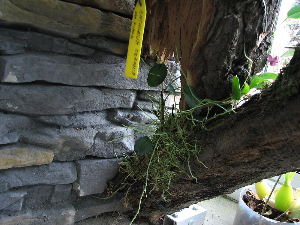 Anthurium scandens var. pumila-to je bez problémů –u mě je navázané na akátu.Nevěděla jsem co s ním , když jsi ho poslal tak jsem navázala do polostínu(kořeny)–jak rostlo už je protažené na sluníčko.Je pěkný fialový kuličky dělají parádu . Ale to druhý to je zmeťour  –jsem stále u kartáčku hm…třeba je to osud. Koukni na foto vytváří nové kartáčky ten původní kartáček to vzdal a raději uschnul. Protože jsi poslal víc rostlinek - mám ho i jinde .Je tam trochu jinak narostlá,v malinko rozdílných podmínkách tak 1°C- foto . Pořád doufám že budou ty kuličky…..zatím ničehož .