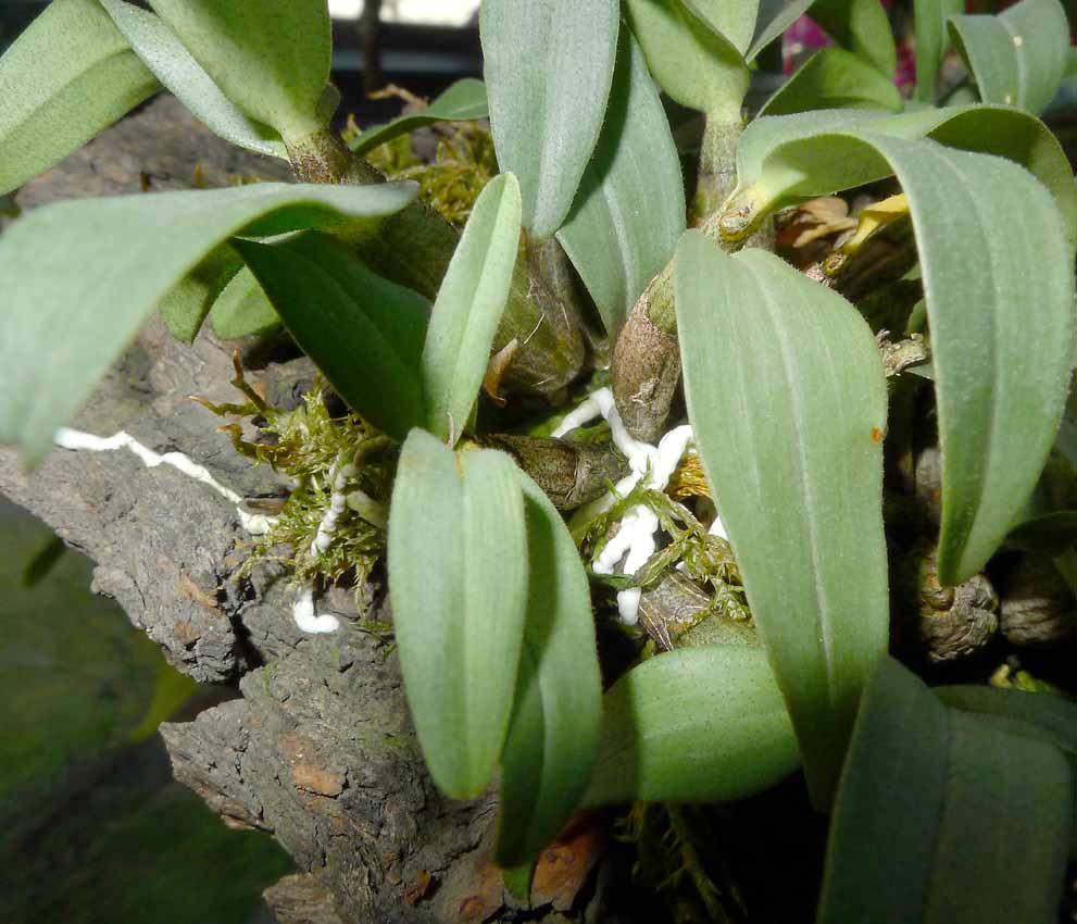 lipo: Mech který používám předtím uskladňuji sušený asi tři měsíce, takže vše uschne a mech je také mrtvý. Jelikož to visí a denně prosýchá tak se v tom žádní škůdci nedrží. Abych ale poslal co jsem slíbil, tak posílám snímky toho Dendrobium bellatulum a také D. senile, aby bylo vidět jak se oběma daří. Doufám, že na jaře to také patřičně zakvete.