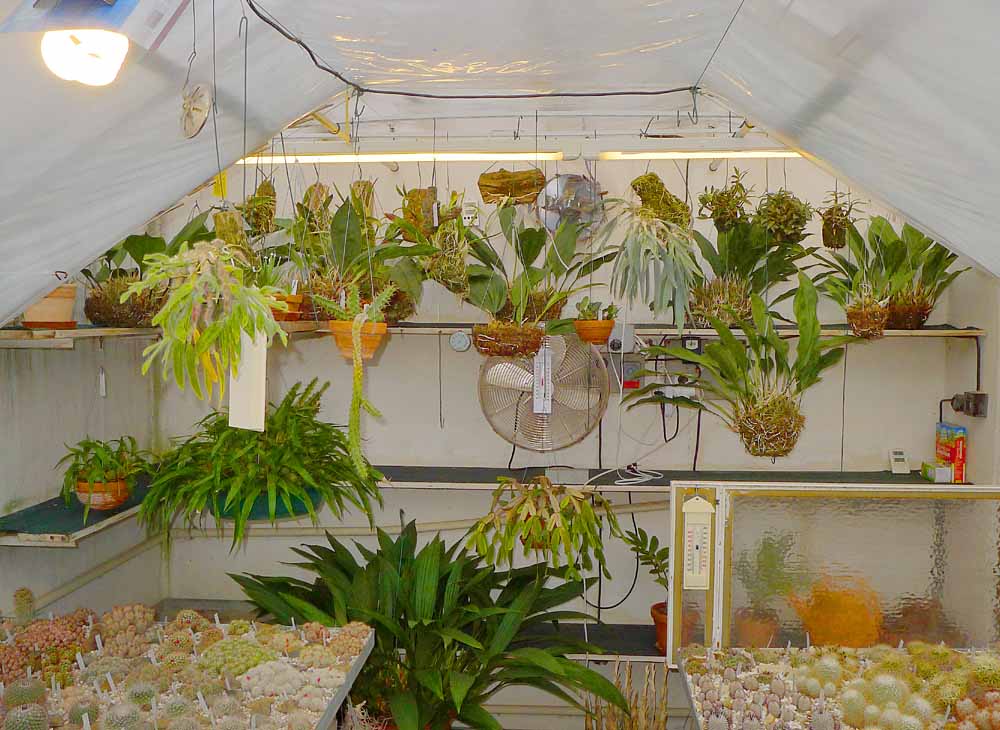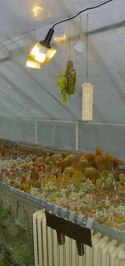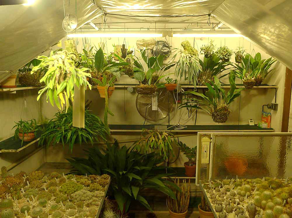 Dnes jsem se ještě podíval na složení světla mých zářivek a na požedavky rostlin z hlediska vlnové délky. Vyšlo mi z toho že zářivky svítí v oblastech, které rostlina téměř ani nemůže využít  . Na druhou stranu ale na L. speciosách mi mírně zfialověly nové listy a to až při svícení. Tak se v tom nevyznám, ale rostliny tím asi ovlivňovány jsou. Letošní zimu to ale nechám, abych měl stejné parametry jako loni kdy speciosy nasazovaly. Pokud to nebude úspěšné tak bych na podzim vyměnil zářivky za T8 30W/77 Fluora, která vychází přesně do spektra pro rostliny využitelného. Má ale ani ne poloviční svítivost  Nevím ale jestli by to mělo pro kytky větší efekt než nyní, ale vyzkoušel bych to. Ještě přikládám ukázku jak přisvěcuji ve skleníku. V ZZ mám pouze dvě úsporné žárovky aby zahrada byla osvícená ve večerních hodinách. Pro kytky to ale má význam asi úplně minimální. Také jsem myslel, že se přidá někdo kdo je v tomto směru fundovanější. Nějak jsem si ale již všiml, že většina těch co něco umí tak si radši nechává své zkušenosti pro sebe, než aby je sdělila široké veřejnosti. Platí to stejně i mezi kaktusáři a i v ostatních oborech- bohužel  . Ještě jsem zapomněl, že ty své trubice mám z 1/3 zezadu polepené alobalem kvůli vyšší intenzitě osvětlení rostlin.