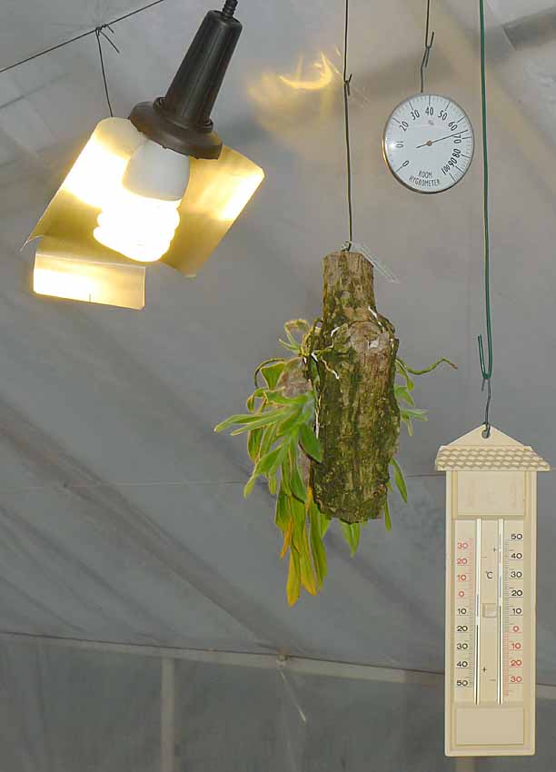 Já od loňského roku používám dvě zářivky Osram T8 L36w/827 Relax 2700°K 3350lm 120cm. Ty mám dané za sebou takže tvoří jednu řadu v délce 250cm u stropu kakt. skleníku v jeho předsíni, kde zimuji asi 50% orchidejí. Nějakých 25cm od trubic mám Laelie speciosy, Encyclie citrina, mariae, Dendrobium belatulum, harveyanum ap. Ze strany jde světlo také na Stanhopeje. Další druhy se nacházejí v nižších patrech a něco je až na zemi cca 2m od zářivek. Pak mám ještě dvě úsporné žárovky 30W/2700°K. Jednu ve skleníku nad radiátorem pro Dendrobium senile a jednu v ZZ pro ty blachy z Peru Přisvěcuji cca 10hod během celého dne. Chtěl bych Vás ale upozornit že v problematice umělého světla jsem začátečník a ani nemám zatím nijak odzkoušeno, že to co provádím je dostatečně účinné řešení. Myslím, že na problematiku svícení jsou tu větší odborníci nežli já. To svícení jsem zavedl kvůli několika druhům které mi nechtějí kvést jako podpůrný prostředek. Také se tím snažím kompenzovat to, že mi po celou zimu nejde do skleníku sluníčko. Těm speciosám a D. senile určitě málo světla v zimním období vadí a rád bych se již dočkal nějakých květů  Je fakt, že mě trochu štve že mi ještě nevykvetly, zvláště v situaci kdy rostou hezky a jinak s jejich kulturou nemám žádné problémy.