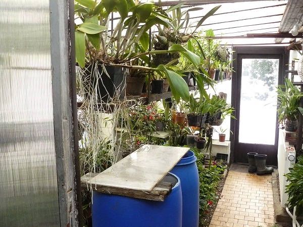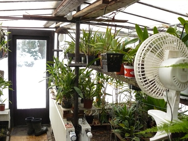 Než jsem stavěl ten venkovní zděný skleník, tak jsem měl před tím atriem malý skleníček 2x3m výška 170cm na Cymbidia, který jsem měl také napojený na UT ale i tak, protože byl zasklený jen 5mm sklem jsem jej každý večer izoloval přiložením polystyrénových desek o rozměrech 1x2m jak na střechu tak všechny boky. Byla to strašná práce. Večer po setmění obložit a ráno ještě za tmy než jsem jel do práce tak zase odkrýt. Samozřejmě pokud padal sníh, který neodtával, tak při sundavání jsem byl dobře mokrý. Dělal jsem to asi tři roky a pak jsem vystavěl ten zděný a ten malý skleníček přemístil na zahradu a pěstuji v něm speciální papričky Pimenta Bico ( mám to na svých stránkách v jiných produktech), které jsou téměř nepálivé, krásné jako ozdoba chlebíčků a jednohubek ale i jako obloha.