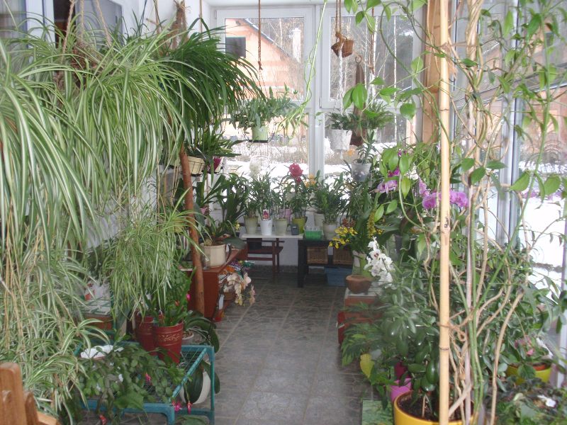 Určitě by to chtělo střešní okna. Takhle mi přijde, že je tam málo světla a rostliny se musí dávat opouze k oknům. Takový tři čtyři okna na střechu by byly suprový.... Jinak je to moc pěkná zimní zahrada. Blednu tu závistí.