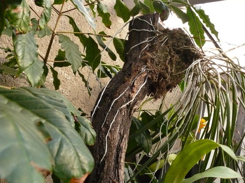 Ještě k umístění rostlin na kmeni. Jsou názory, že akát je jedovatý a proto na něm nemohou orchideje růst. Omyl. Mohou, není to parazit, takže se na něm jen drží. Tady je důkaz.