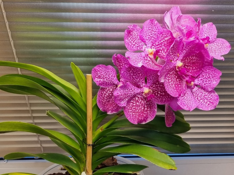 Tak to vypadá, že se Vandě u mě líbí. Vykvetla. A květy mají cca 10 cm v průměru.