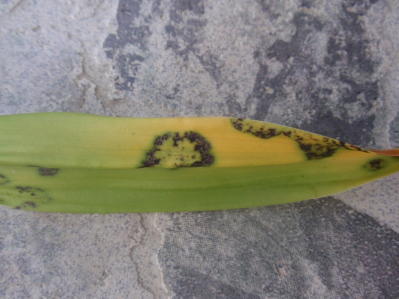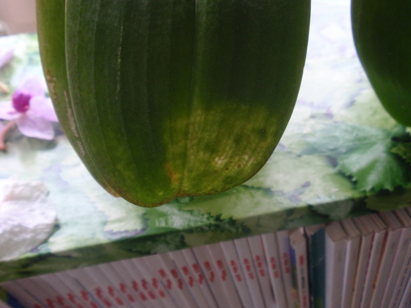Myslím, že jde o bakteriózu způsobenou vlhkostí. Nerosíte rostliny na noc, při větrání, studenou vodou nebo naopak při slunečním svitu? Ten nový list u faleňáku je asi také od sluníčka.