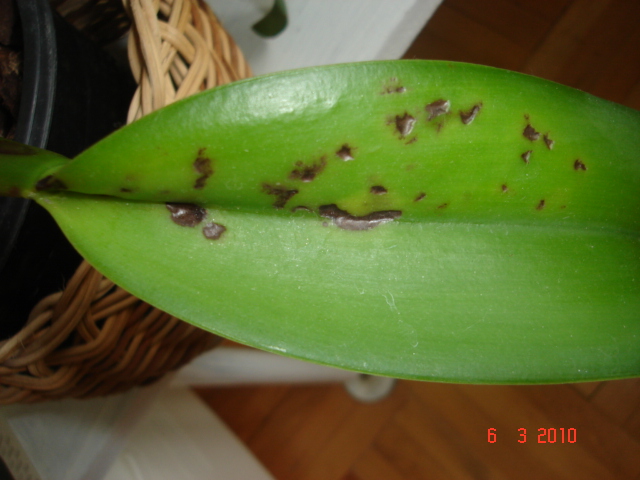 Teď poprosím i já o radu nebo potvrzení, po týdnu se mi objevili tyto skvrny na Catleyích, jeden známý mě straší bakteriozou.... Příloha: