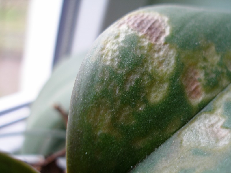 to Teta - přesně tohle mám na listech Catt. mossiae, skvrny jsem "natrhla" špendlíkem a pak to potřela uchošťourem namočeným v neředěným Careo od Substralu. Dál se to nešíří, zatím (cca 3 měsíce).