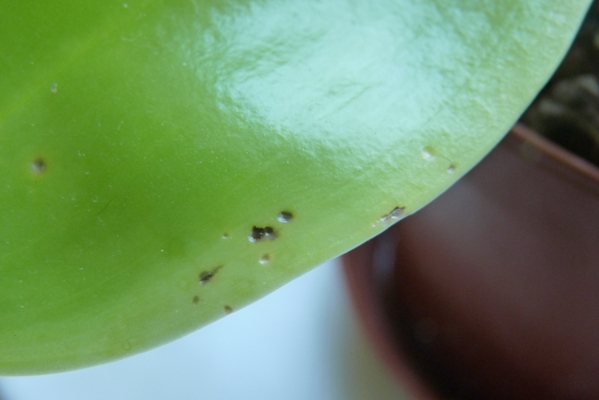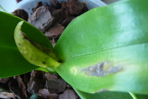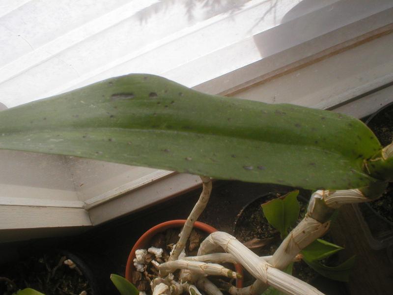 Myslím že je to všecko virus. Na zdravých kytkách se tohle netvoří. Může se jednat o spolupůsobení bakteriózy, nicméně myslím si že testy by odhalily CymMV. Pro mě je stále ještě nevyřešená otázka přenosu. Phalaenopsisy jsou k tomuto obzvlášť citlivé, ale proč se nakazí několik kytek za krátkou dobu, to netuším. Roztoči ani třásněnky to prý nepřenáší. Kdyby se jednalo o přílišné vlhko (mokro), mohla by to být bakterióza Pseudomonas cattleyae, nebo spíš Acidovorax, ale to na fotkách je virus.
