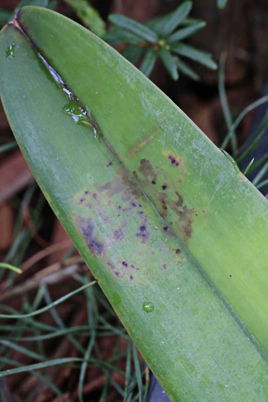 Přikládám foto Laelie purpurata.... myslím si, že jde o nějakou hnilobu - vzhledem k tomu, že jsem zjistila, že je to i na krčku pahlízy.... květy měla v pořádku, ty fleky jsou ale nehezký a jak je teď venku, tak to nějak více vyniklo.... Co si o tom myslíte?