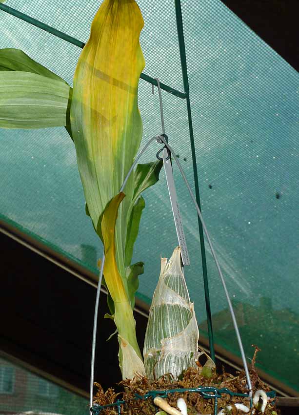 Karlos: Myslím, že v tomto případě to popsala zcela přesně P. Zdenka. Nastalo to z přelití a z přeplnění listů vodou. Dosti mne překvapilo, že ty listy byly ze spodu "sklovité" jakoby průhledné skoro celé. Myslel jsem že o ně přijdu. Nakonec se ale naprostá většina ploch vrátila do normálu, pouze část listu se nevratně zničila. Ta byla během dne nejvíce na slunci. Někdy se mi stalo že praskla pahlíza což se z přelití stává i u kaktusů. Prostě všeho moc škodí. To hnojení bude mít vliv na stav a pevnost pletiva, to ano. Ale poučil jsem se z předchozích roků a vyřadil jsem Kristalon květ a plod a nahradil ho hnojivem na orchideje s poměrem NPK 4-4-7. Ještě ho střídám s Plantelou 6-12-10. Tím jsem snížil dusík cca na 1/4 oproti Kristalonu. Hnojím ale příležitostně a většinou pouze poloviční koncentrací. Vzrůstné druhy jako Stanhopeje a C. dayanu ale více. Listy byly letošní a doufám, že vyhnané dusíkem nebyly. To hnojení jsem změnil zejména kvůli tomu D. senile. Jo rostlina D. senile roste skvěle a tlačí mi dokonce 12 nových výhonů. Roste jak ten největší plevel a ty podmínky u mne mu sedly tak že se nedá nijak zničit  . Díky tomu se asi ani nepokouší o rozmnožování  . Z míry ho nevyvedlo ani 7 měsíců sucha  .