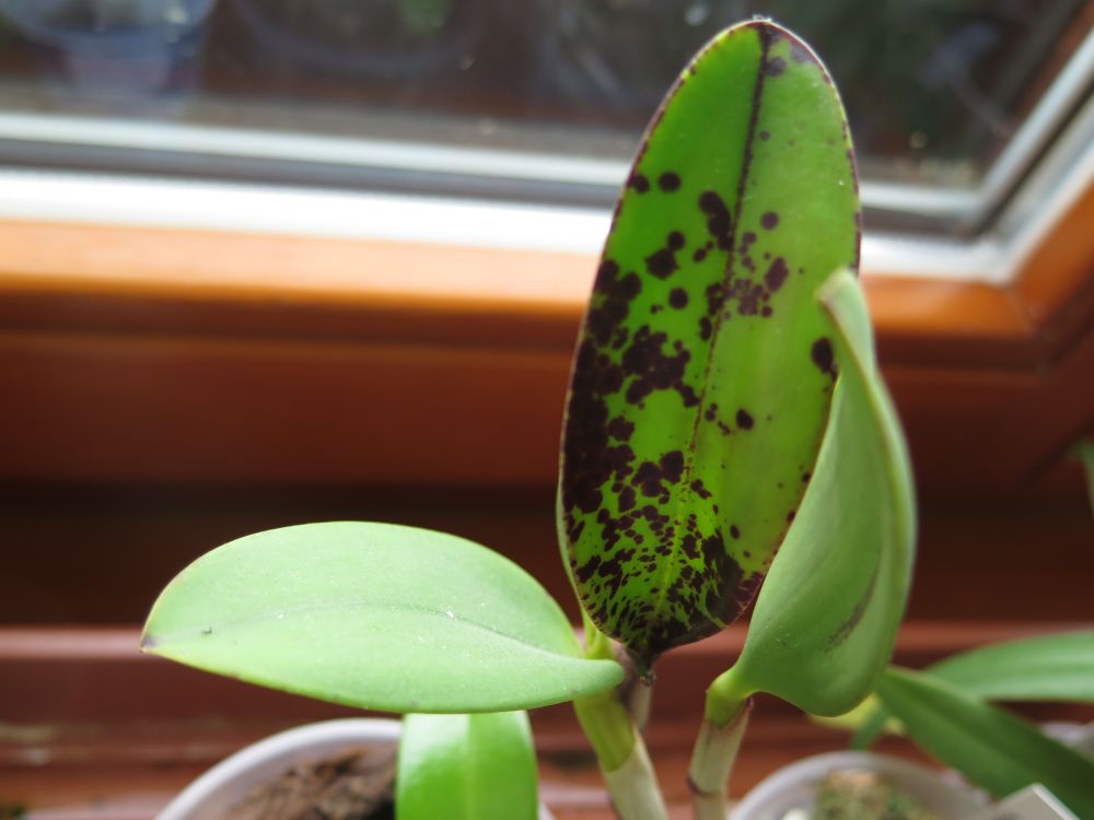 kvusta, žádná panika je zaručeně běžný symptom který se na listech některých křížení objevuje nepravidelně ale OBJEVUJE !! Není to tedy žádná nemoc ale kdy se to objevuje nevím, možná hodně světla. Mám křížení Sl. Orpetii a ta je flekatá na všech listech a na všech rostlinách co mám . Kde se to vzalo v tomto primárním křížení nevím. Nemusí to ale souviset s flekatými květy. Někdy když jsou listy starší tak to mizí.