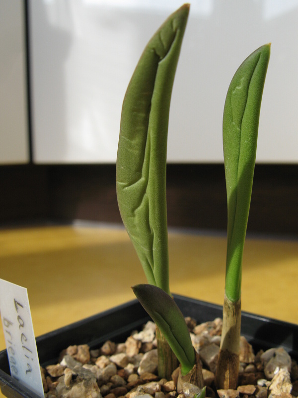 Zdravím, nedávno jsem sehnal jednu Laelii (briegeri) a nějak se mi nelíbí... Na listech má takové divné rýhy, listy se neotvírají a jsou pořád v horní půlce sevřené a ten prcek (nová hlíza) se mi zdá že roste pomaleji než u jiných druhů. Nevíte, prosím, čím by to mohlo být? Nic velkého (okem viditelného) lezoucího jsem na kytce neviděl. Díky.