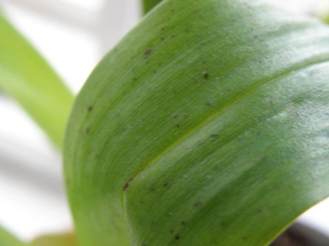 Tak přesně toto se mi objevilo na rostlině asi před rokem. Orchidej ještě normálně vykvetla a postupně úplně a nezadržitelně odešla. Typoval bych to na nějaké virové napadení, protože běžné přípravky na škůdce nezabraly.