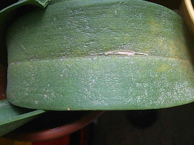 Vypadá to na roztoče rodu Brevipalpus. Jsou menší než svilušky, ale kdo má dobré oko je vidí. Jsou cihlově červení a nalezlí v těch propadlých skvrnách. Je to můj odhad. http://www.orchidboard.com/community/at ... to-10-.jpg