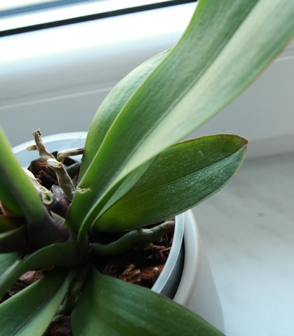 dostala jsem novou phalaenopsis, ale všimla jsem si, že listy nejsou úplně v pořádku. Orchidejí mám asi 15 a u žádné tento problém nevidím a ani jsem nemusela řešit, chci se proto zeptat, o co se jedná. Listy jsou našedlé s ďolíčkama.