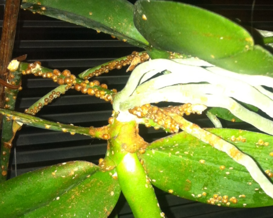 Dobry den, vcera jsem u kamaradky narazila na nemocne orchidee, vkladam jednu co ma na sobe dve miminka a cela rostlina je posazena hnedymi "bolacky" . Hledala jsem na internetu a nenasla , poradili by jste co s tim? Dekuji