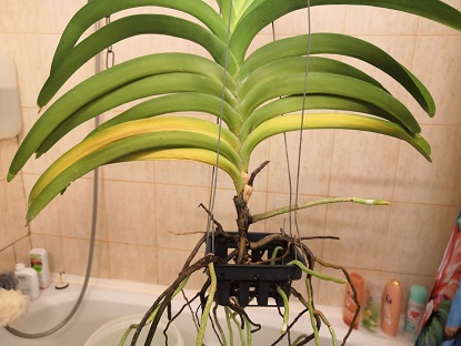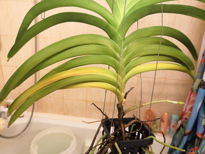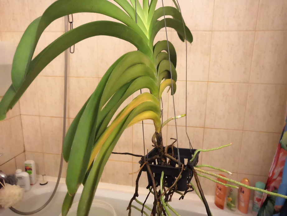 Právě v tomto období aspoň u mně doma žloutnou spodní listy. U vandy coerulea jsem 2 odstřihnul. Toto se děje každý rok na podzim. Asi za 3 dny vložím fotku rozkvetlé hybridí vandy v piniovce a uvidíte spodek rostliny, kolik listů už chybí a kolik tam narostlo nových kořenů. Kvete letos po 4x.