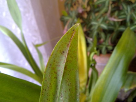 ahoj ,muzete prosim mrknout na fotky ktere prikladam v galerii na rajceti. udelali se mi na nekterych orchidejich nejake tecky,je to videt,jsou jakoby tmavsi a proti svetlu hodne svetle. nevim co to je, strikal jsem to agrionem,otiral mydlovou vodou,nevim cim to muze byt. skudce jsem tam nenasel,dukladne jsem to rphlidnul a nic. mate s tim nekdo zkusenosti,co to asi muze byt? dekuju za rady a pomoc. foto je v galerii http://luludi.rajce.idnes.cz/orchideje_ ... 270538.JPGhttp://luludi.rajce.idnes.cz/orchideje_ ... 140232.JPG