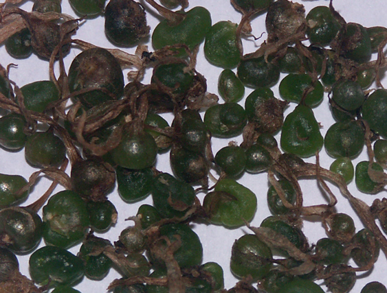 Dnes jsem vylahvoval nějaké Pleione forrestii z dříve probíraných kelímků SACO, tak tady je vzorek - velikost bulbilek je od 1 do 3 mm. Filtr na kelímku byl zelený - tj. XXXL a médium po 3/4 roku téměř vyschlo. Nicméně na pleionky to stačí. U kelímků s filtry L, XL a XXL (bílý, žlutý a růžový) žádný výrazný úbytek substrátu není. Ale jak již jsem psal, nevidím žádný rozdíl mezi těmito drahými kelímky a zavařovačkou. K.