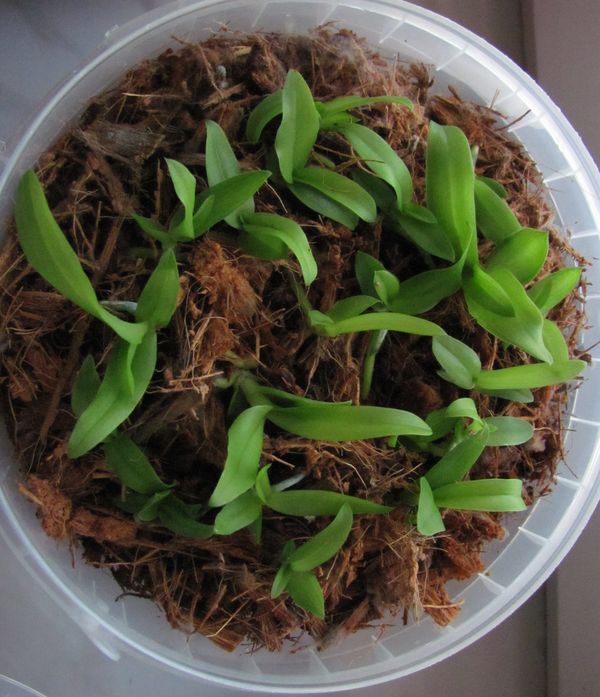 Tak se taky pochlubím , práve vyflaškovanou orchidejí Laeliocattleya cca 9 měsíců od výsevu. Velikost rostlinek cca 3-4 cm.