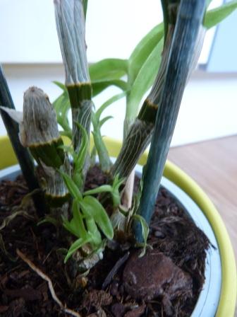 Řekl bych, že to nejsou keiky, ale nové výhony, Keiky obyčejně nejsou na úrovni substrátu, ale výš na pahlíze. Fotky ale nejsou dost zřetelné, aby bylo vidět, kde jsou výhonky umístěné, Pozor, stará pahlíza Dendrobia už neporoste. Takže žádné oddělování, nechat vyrůst.
