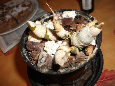 Loňské květenství - teď se už taky klube....viz.horní foto. Jen ty pahlízy jsou pořád bez lístků...nevím jestli je to tak správně. Kvete každým rokem, ale vypadá bez květu strašně.