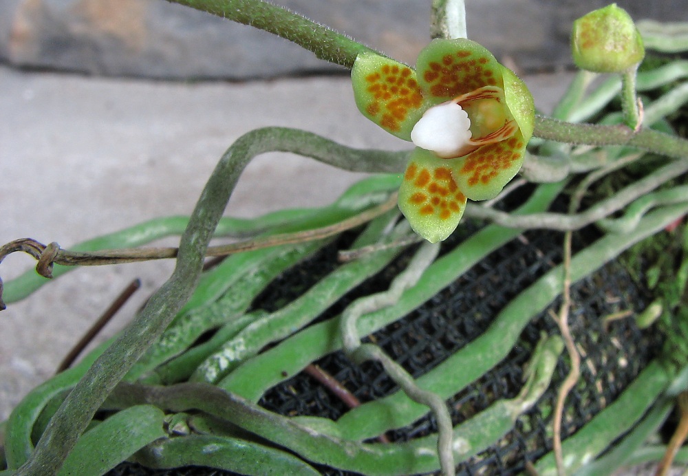 To marťan -začíná se vybarvovat ,ale ještě by se mohl květ vylepšit  jinak pěknej. Když se tak líbí ty titěrnosti -ještě jedna .Pro mne krásná rostlina hlavně kořeny -uvidíme jak se rozroste.