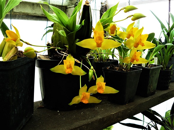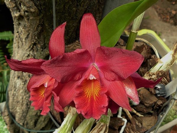 15 květů Renanthera Bangkok Beauty a čerstvě otevřený květ Mokara Chark Kuan orange