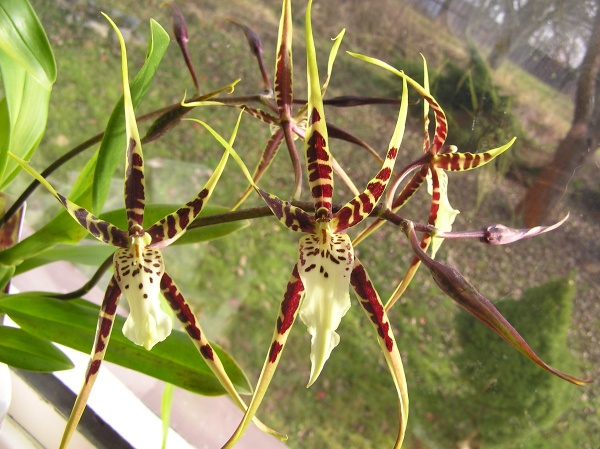 Tak od škůdců k fotkám: moje kvetení brassie + přírůstky z Kociánky . phragmipedium bessae a coelogyne fimbriata a na závěr cymbidko v plném květu, postupně má nasazeny ještě čtyři stvoly v různé fázi.