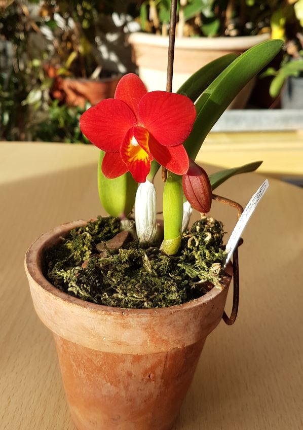 Prvně kvetoucí rostlina Rth. (ani nevím co to je, jestli Potinara nebo Slc. a už se nebudu předělávat). Takže Rth. Angle Voice s nádhernou barvou i když menším květem (6,5cm). Rostlina je malá cca 10cm a roste zatím velice dobře. Upraveno na správný formát.