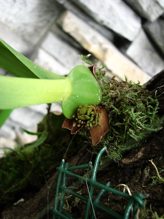 HANKO tak se podívej jak to nakonec dopadlo.Nevím jestli vše vykvete ,protože Maxillaria densa je na akátu od srpna tohoto ruku.Nevidím moc kořeny.Ale srandovní chochol to už je .