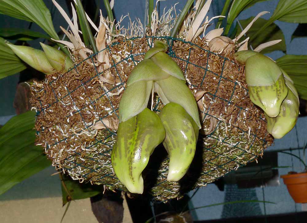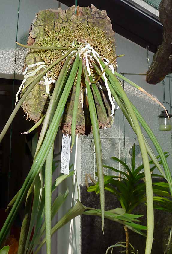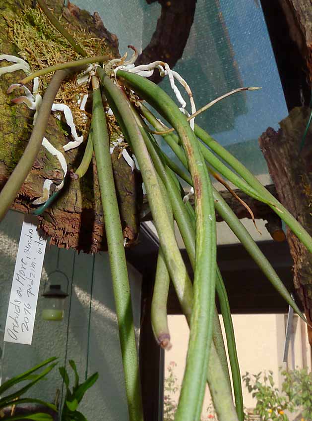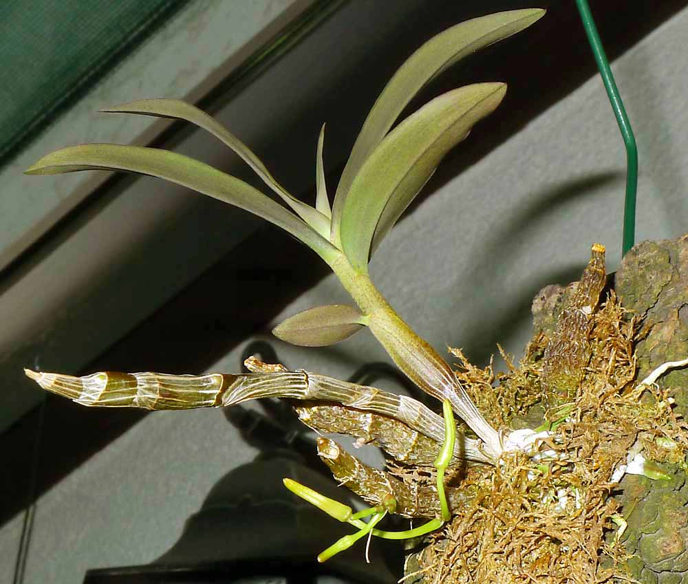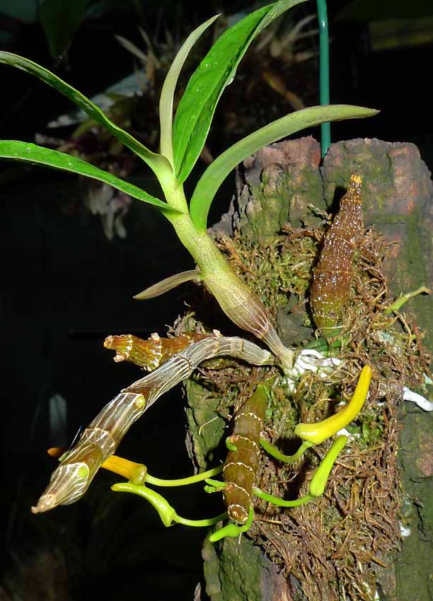 Právě mě potěšilo několik rostlin Dendrobium lamyaiae. Myslel jsem si, že když je podobné D. unicum tak také kvete na jaře. Jelikož se na jaře nic netlačilo, smířil jsem se s tím, že letos mi nepokvetou. Mám je totiž od loňského konce léta, kdy mi přišly a přilepil jsem je na kůru. Ještě pořádně ani nezakořenily. Nyní jsem ale zjistil, že stará předloňská pahlíza tlačí květy. Prohlédl jsem tedy ostatní a zjistil, že pokvetou i další rostliny a budí se jedno za druhým očkem i na loňských pahlízách. Dočetl jsem se, že tento druh kvete v létě, což tedy odpovídá