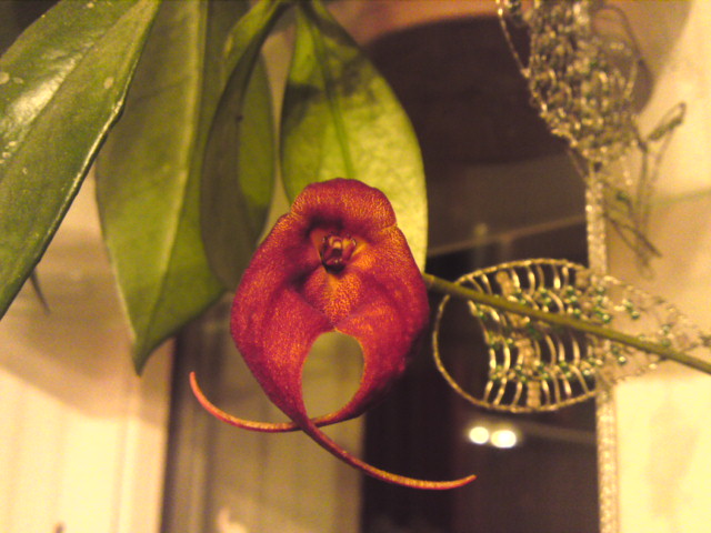 Právě a nedávno kvetoucí. Masdevalia veitchiana x ayabacana jsem si přivezla z Drážďan už s poupětem. Trochu zklamala, čekala jsem větší květ a/nebo postupné opětovné nakvétání.