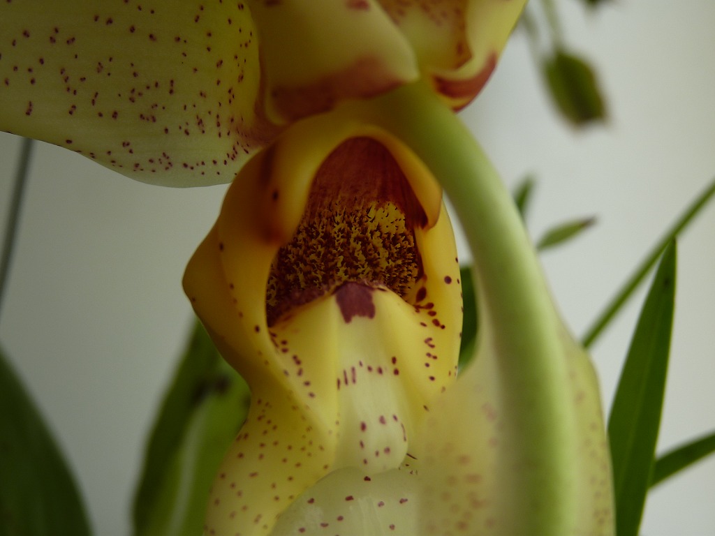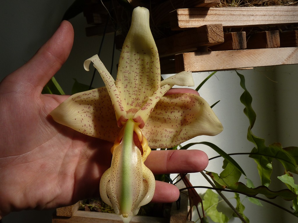 A to je právě ono Pavle. To by se dalo říct, že by mohl být jeden z hlavních znaků, jak rostlinu určit, ale já jsem to také na žádné nikde neviděl. Na netu tedy vůbec. Přírodní hybrid se mi zatím zdá nejbližší Stanhopea Bellaerensis (insignis x oculata), ale ta to taky nemá.