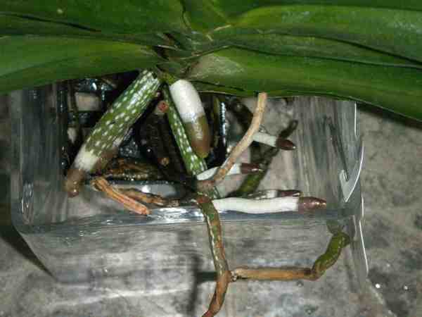Miro, koukám na ty Vandy, úžasný. Ten skleněnej obal je plný kořenů? Vidím to dobře? Mám Vandu, jen je nějak chudinka. Musela jsem ostříhat kořeny, protože jsem jí je zničila nejspíš silnějším roztokem hypermanganu (zdálo se mi, že chytly nějakou plísňovou chorobu. Teď už rostou nový (posílám obrázek) a tlačej se na stěny v té kulaté váze. Vadí to? Nezloměj se? Dala jsem ji do hranatý, je v ní víc místa. Nemám ji nechat v tom těsnějším prostředí? Ď, Ň. Příloha: