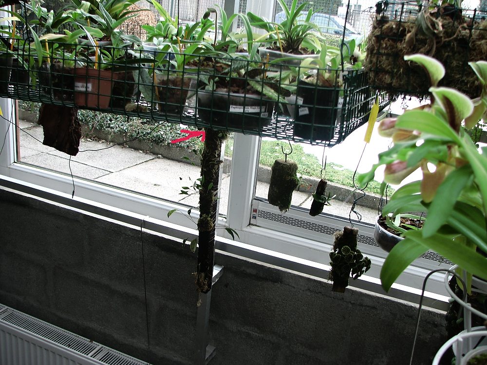 To já budu za každou radu ráda ,ale to místo kde je Lepanthes navázanej je strašný.Nejde s tím nikam hnout a nahoře je zimoviště střevíců.Jedno rychlé foto jak to je.Je to tam trošku zabarikádovaný.