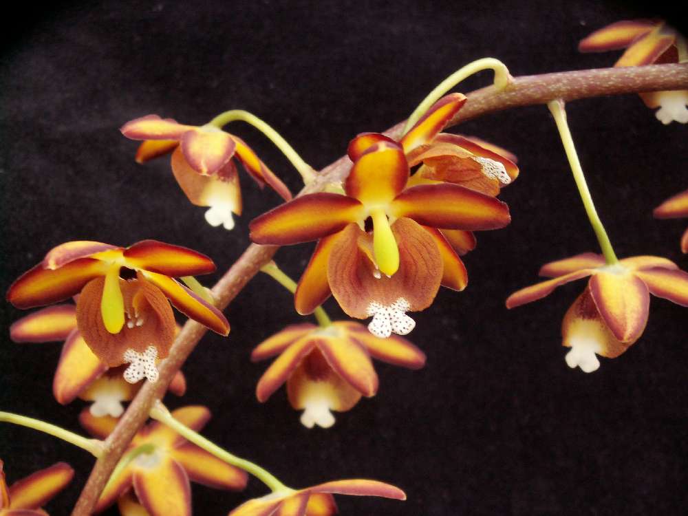 Od Peruflory jsem si pořídil před dvěma lety Eriopsis bilobu. Chovala konstantně jedna pahlíza urostla, jedna uschla. Nějak jsem ji na podzim zanedbal, pahlízy se svrkly a po zalití vyrazila stvol . Zkoušel jsem ho vyfotit , ale moc se to nepovedlo. Je asi 30 cm dlouhý a boční světlo udělalo své. Jinak květy jsou zajímavé asi 2 cm viz foto