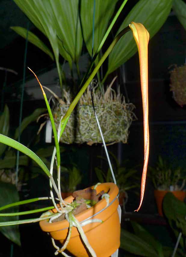 Doufám, že vykvete toto Cyrtopodium asi punctatum. Pochází od Tuly ze státu Tamaulipas, Mex. kde roste na skalách s Mammillaria hahniana. Z této lokality mi ještě nikdy nekvetlo.