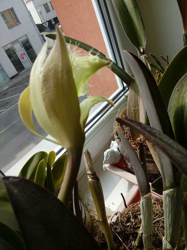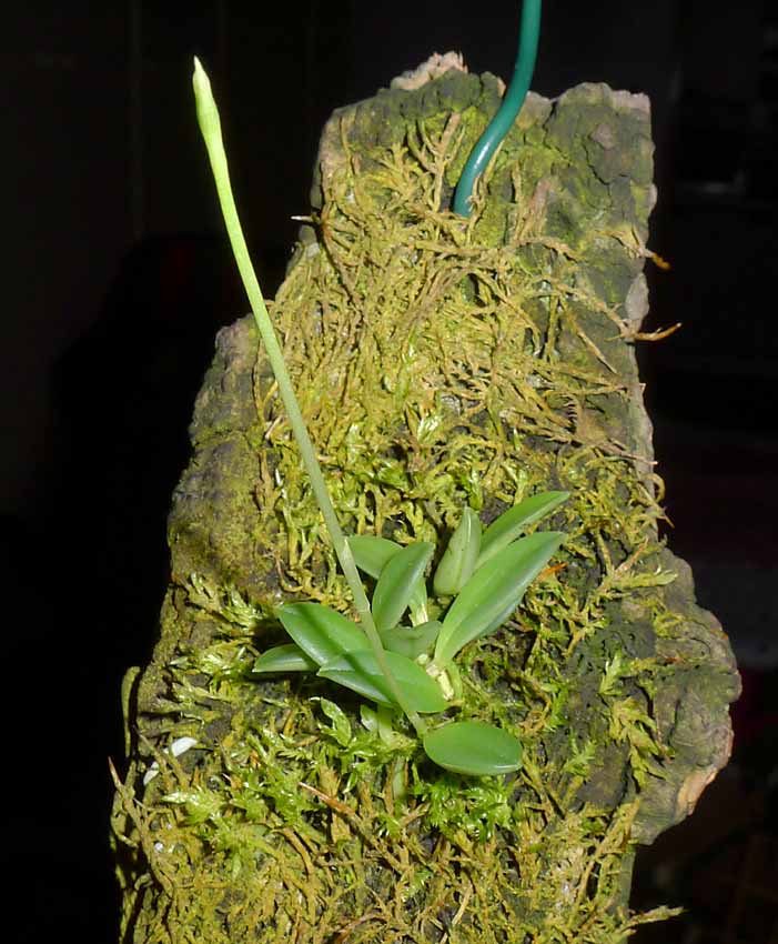 To mě tedy podržte. Ta malá "blecha" co mi loni přivezli z Peru nasazuje na květ. Listy má stále do velikosti 1,5cm a vyhání takový klacek. Loni jsem ji určoval jako Masdevallia amabilis což je prý evidentně špatně neboť ta kvete růžově nikoli oranžově. Jsem zvědavý jak vykvete. Kamarádovi co si nechal dvě rostliny tak už to chcíplo. Je z 3300m a tak jsem se domníval že ji přes léto uvařím, ale kupodivu roste dál. Asi se jí líbí přilepení chemoprénem