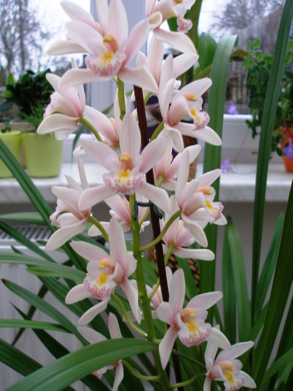 Zase mi rozkvetly další hybridky a zase ty zabírající hodně místa. Cymbidium má ještě další 3 rostoucí květní stvoly a tak jsem zvědavá, jestli vykvetou dřív, nežli tento odpadne.