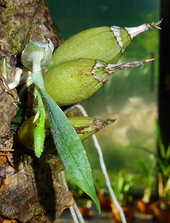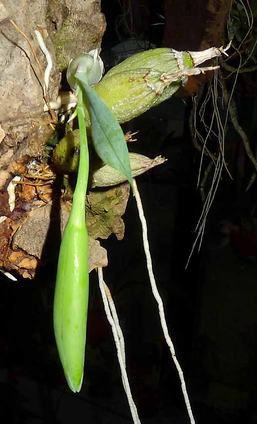 Na jedné z Encyclia citrina která byla loni koupená v Drážďanech se začalo nyní klubat poupě. Byly to pouze holé pahlízy které jsem přilepil na korek a během loňska rostlina utvořila malou pahlízku pouze asi 1cm v průměru, asi 5cm lísteček a několik kořínků. Ani by mne ve snu nenapadlo že se z ní nyní bude klubat minipoupátko a možná minikvítek? Myslím že ale spíše zajde. Jsem fakt zvědavý protože tahle mi ještě nekvetla. Někdy se prostě člověk nestačí divit