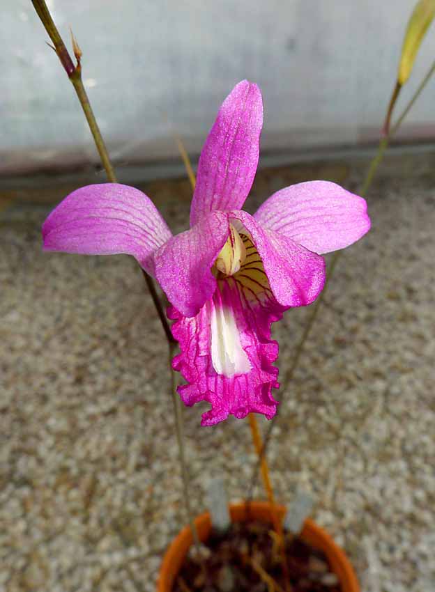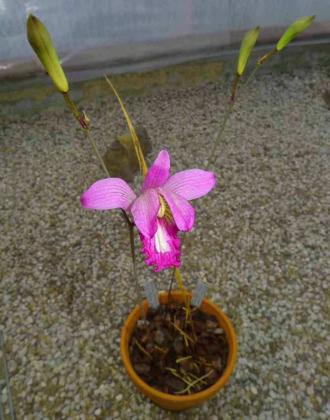 Dnes mi rozkvetl první květ na Bletia jucunda, Sierra Morones, Zacatecas, Mex. Kytku mám od roku 2010 ale nějak neprosperovala, lépe řečeno jsem ji málem odmordoval  . V piniovce se jí ale nějak začalo dařit a tak se trochu rozmnožila a snaží se kvést. Tyhle podzemní věci nemám rád