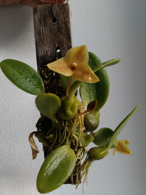 Václav - myslím si, že to nebude D. speciosum - to má úplne iný tvar kvetov (stačí zagúgliť). No ono i botanici u neurčených věcí píší např. Stanhopea sp. Pokud by to měl být druh D. speciosum, Pak to být ani nemůže, protože rostlina je zcela jiná, květ také a hlavně květ velký cca 5-6cm a jsou na dlouhé nerozvětvené latě. Příloha moje kvetení. Nejsem si jistý ale možná jsem ho Alešovi dával cca před 10-12 lety ale ruku do ohně za to už nedám.
