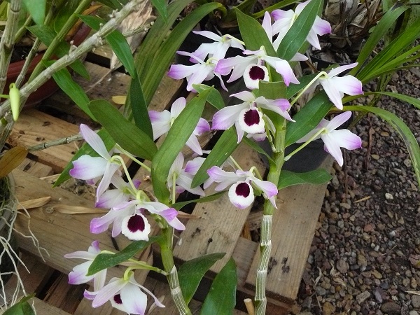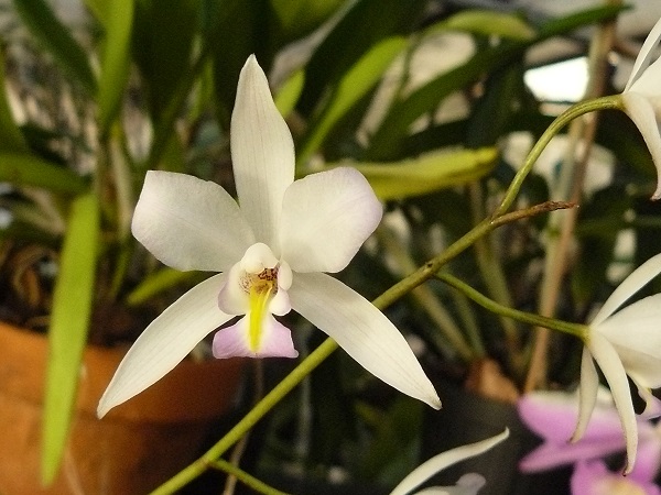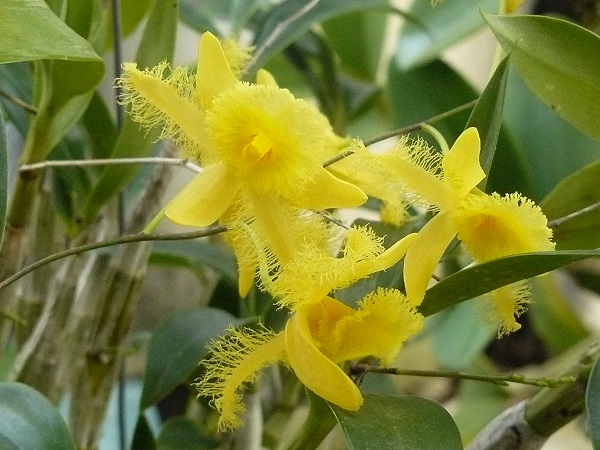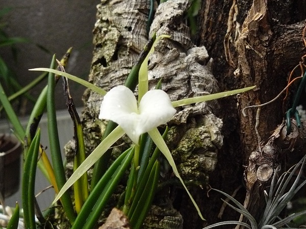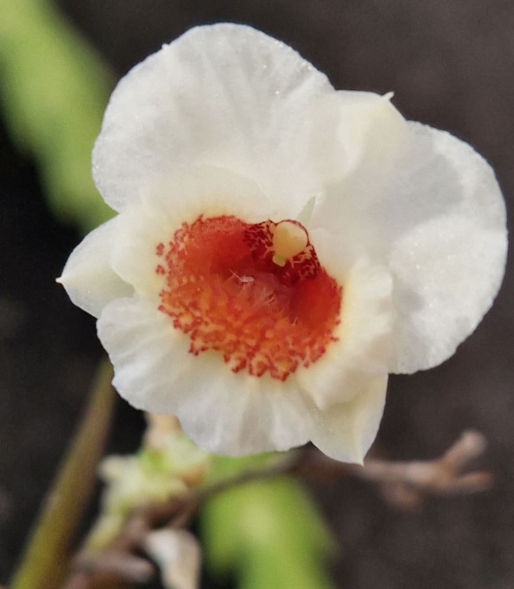 Lockhartia bennetii. Květ velikosti o něco menší než 1 Kč.
